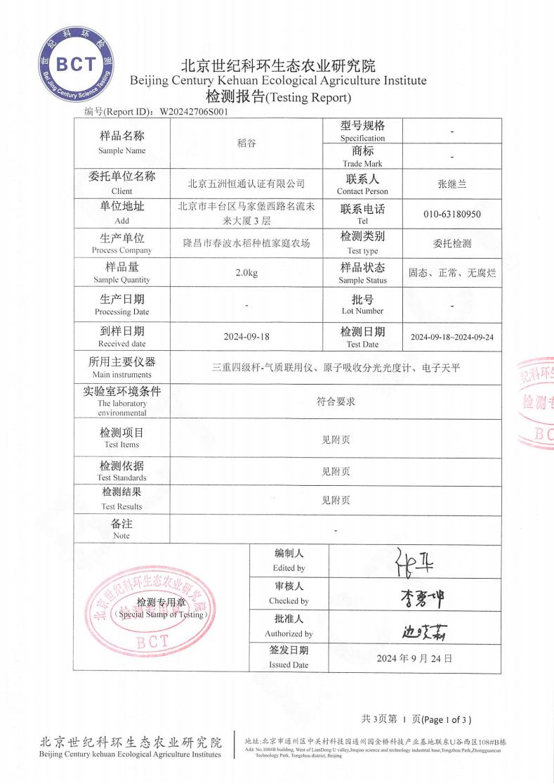 稻谷检测报告