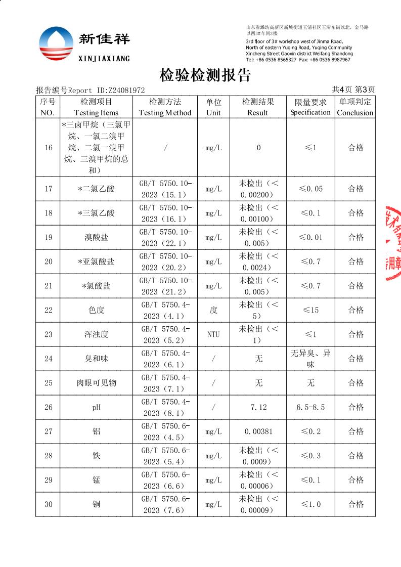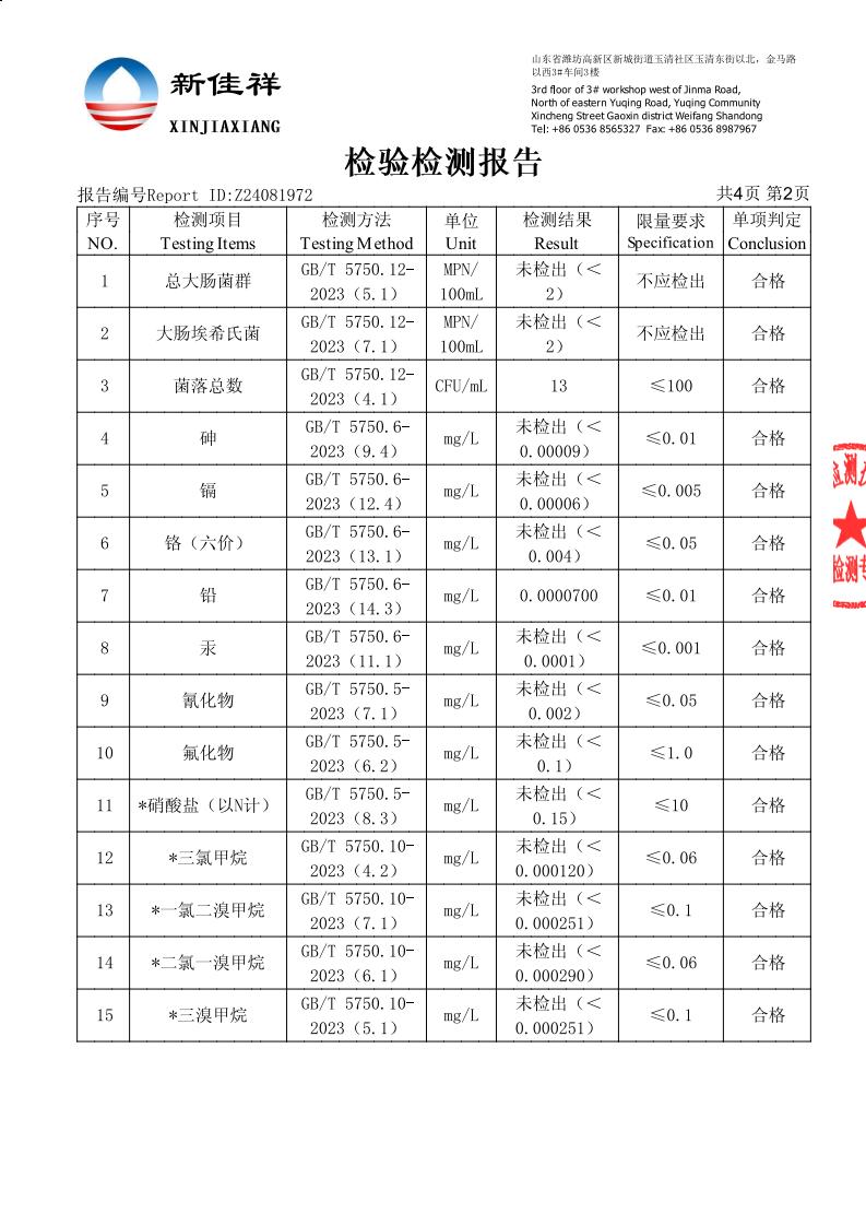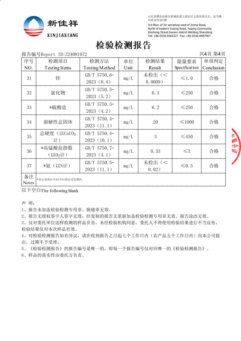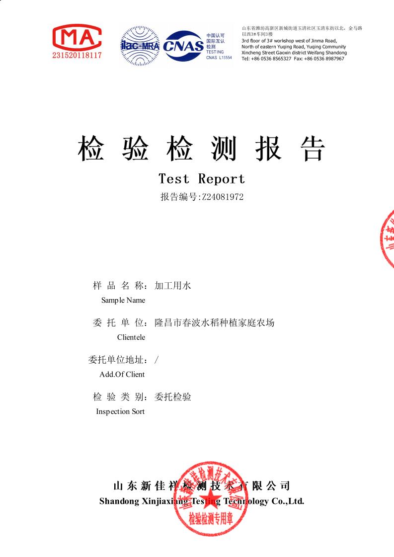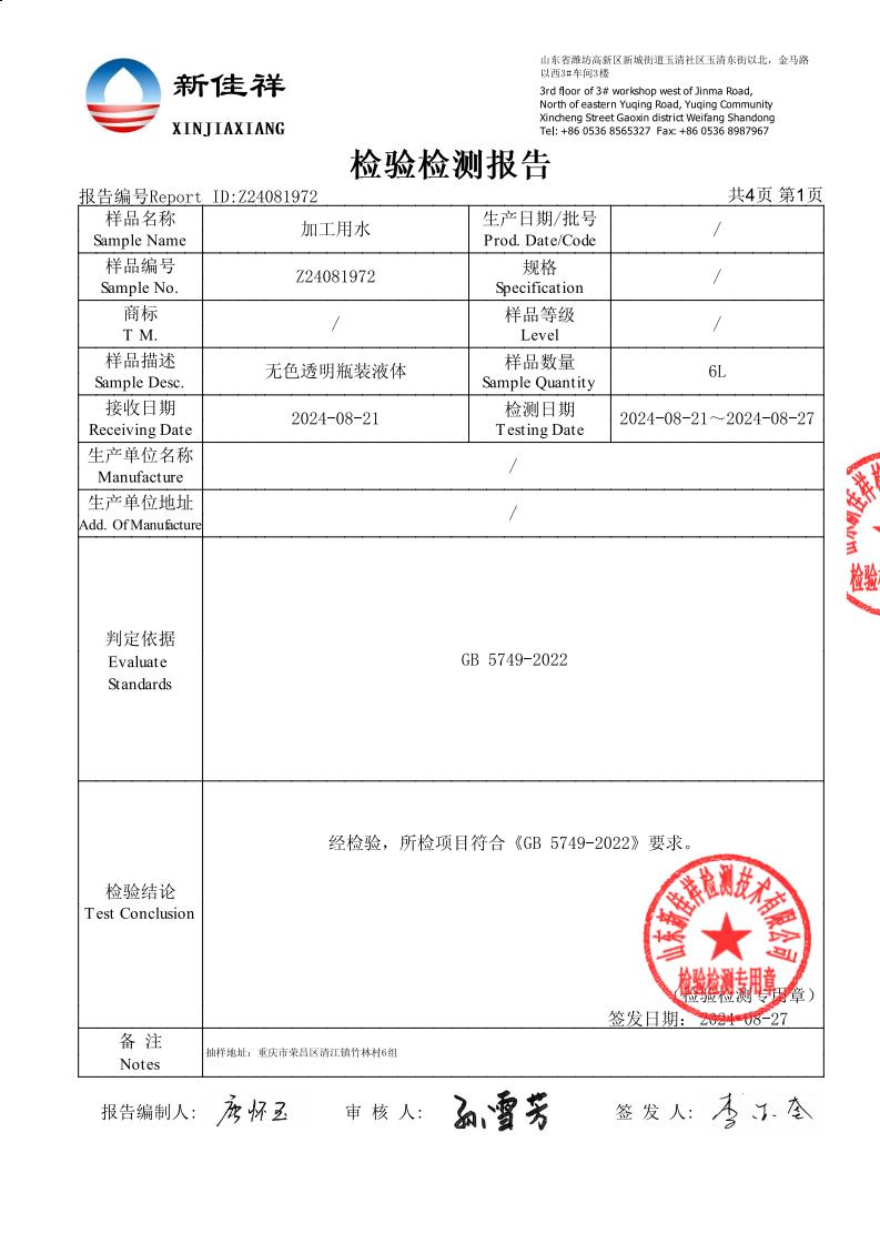 加工用水检测报告