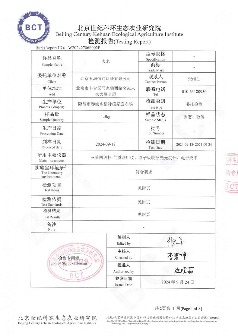 大米检测报告